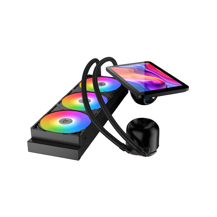 Upgrade your cooling with the 360mm AIO Liquid Cooler featuring a large 7-inch LCD pump head, ARGB PWM fans, and a high-performance radiator.