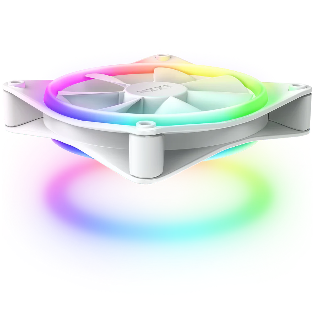 The F120 RGB fans feature fluid dynamic bearings that extend lifespan while minimizing noise. Additionally, the fully addressable RGB LEDs allow precise lighting control through NZXT CAM software. The white fan frame complements modern builds, adding both style and performance.