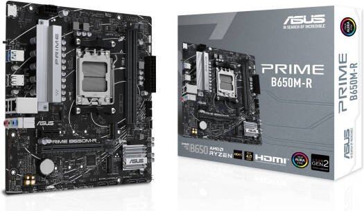 The PRIME B650M-R motherboard combines compact design with high-speed reliability.